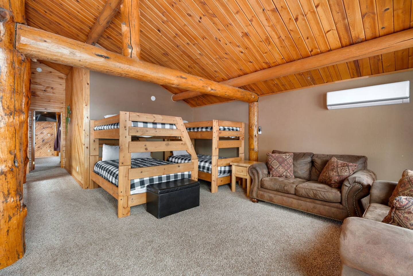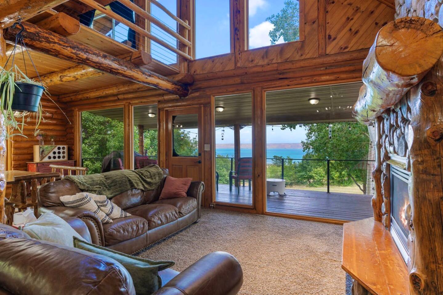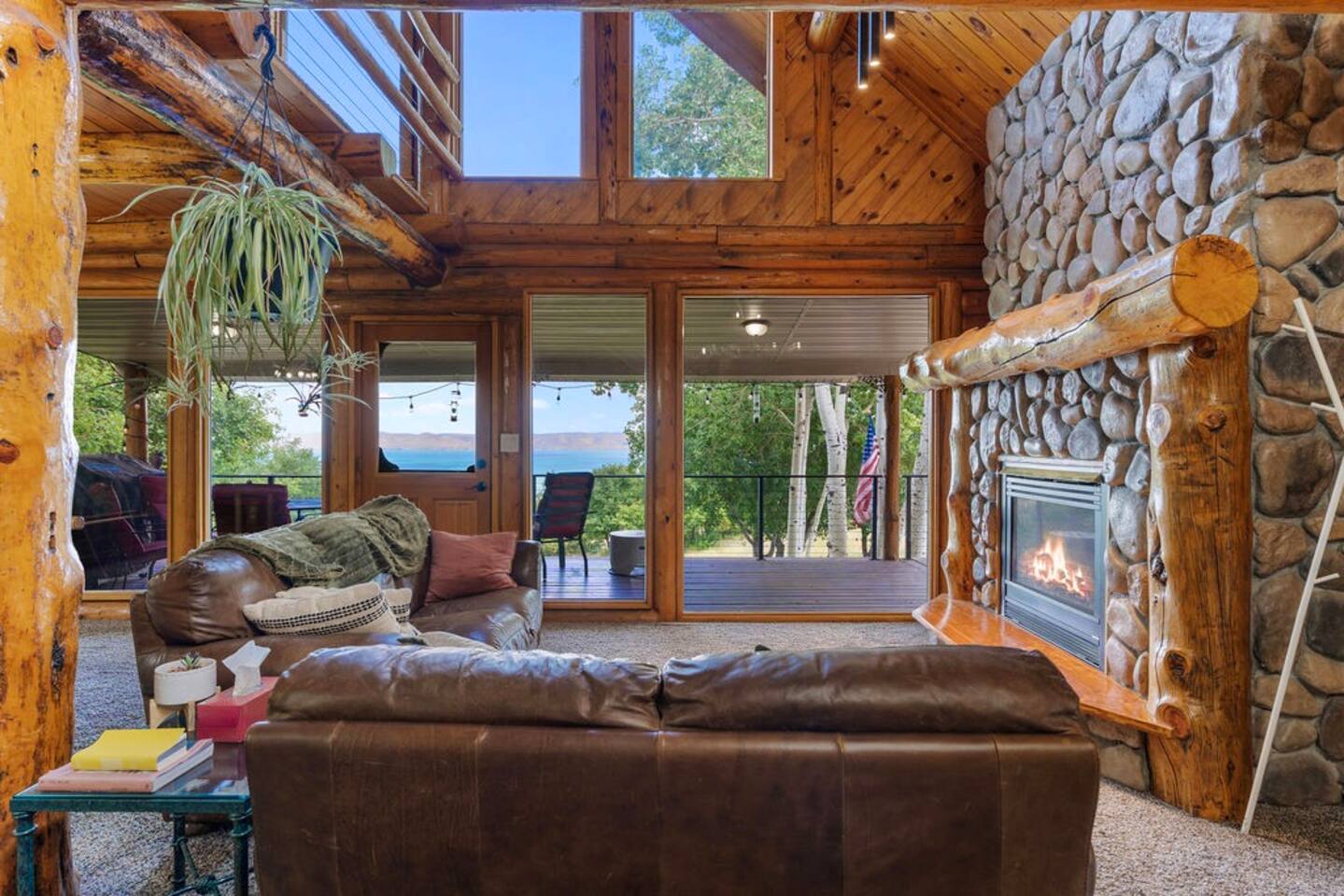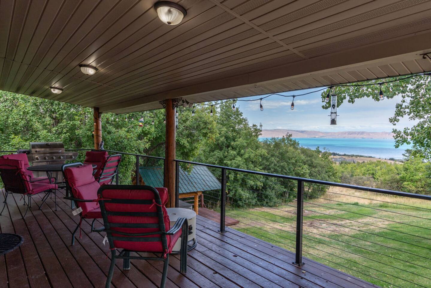 OUTDOOR SPACE Everyone loves the beauty of Bear lake, and at this cabin there is plenty of outdoors to enjoy. Enjoy expansive lake views, hot tub, large balcony, fire pit, gas grill, and outdoor seating — all on 20 acres of private serenity. TWO LIVING ROOMS Spread out with two large living rooms with flat-screen TVs. Relax by the stone fireplace on the main floor, play ping pong, or lounge on the oversized sectional downstairs. BEDROOMS Spacious bedrooms offer plenty of room to sprawl out and sleep up to 17 people. Have a little one? We have you covered with a Pack n' Play. — Bedroom 1: King bed + Queen bed — Bedroom 2: Queen bed — Bedroom 3: Queen bed — Bedroom 4: Queen bed — Bedroom 5: Queen bed — Loft: Twin-over-full bunk bed + Twin bunk beds KITCHEN Fully equipped with stainless-steel appliances, microwave, toaster oven, drip coffee maker, blender, cooking basics, dishes/flatware, complimentary spices, and breakfast bar with 4 stools. TVs & WIFI Take in your favorite shows with Smart TVs located in the downstairs living room and master bedroom. You'll also enjoy high-speed Starlink Wifi throughout the property. PARKING/BOATS Bringing a boat? There is plenty of space to park your watercraft. There are two garage spaces for vehicles and room for 5 more in the driveway.