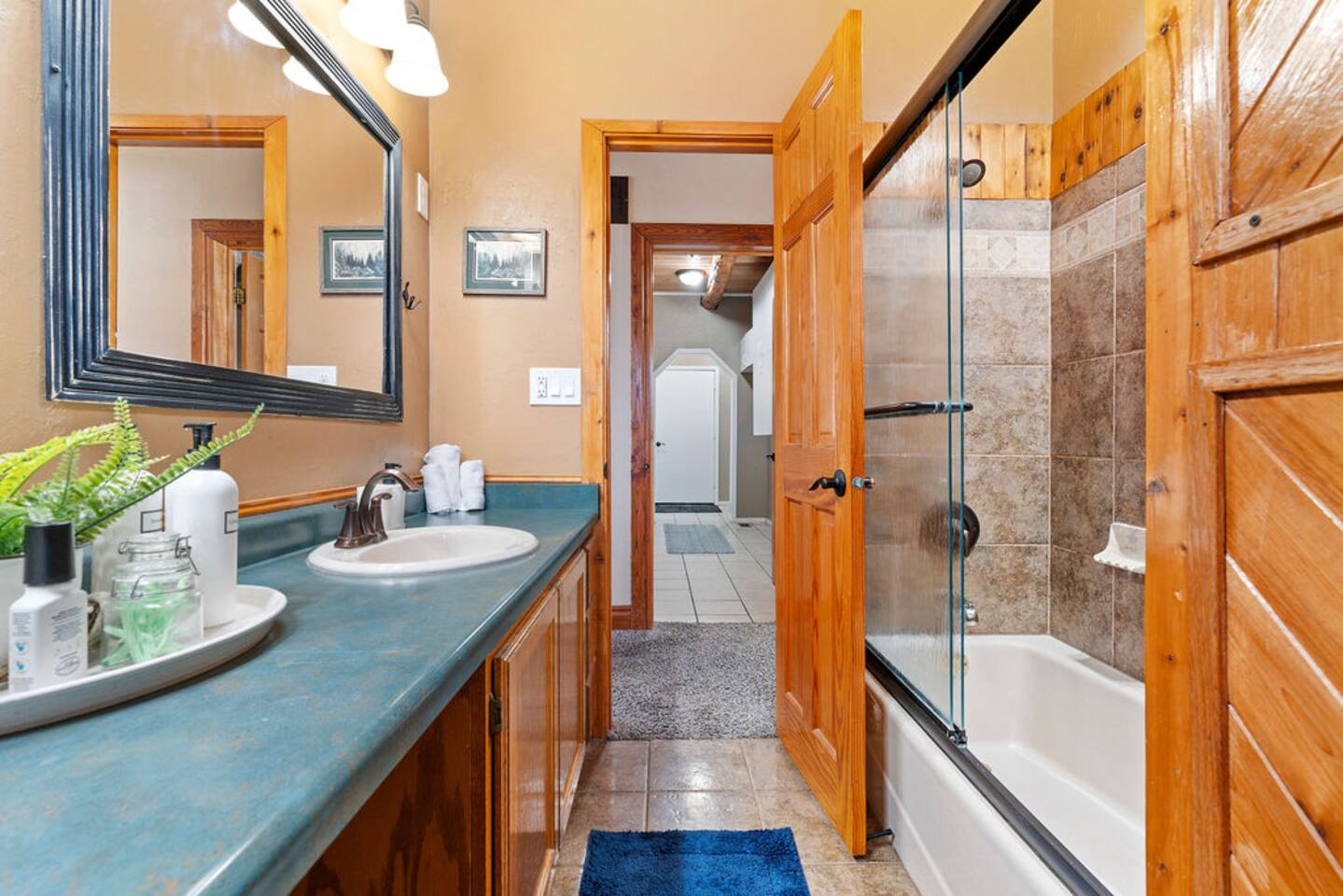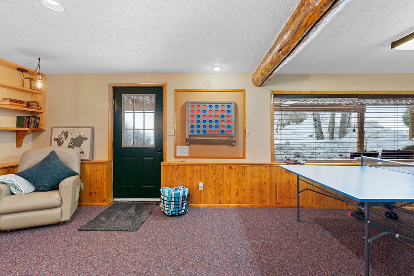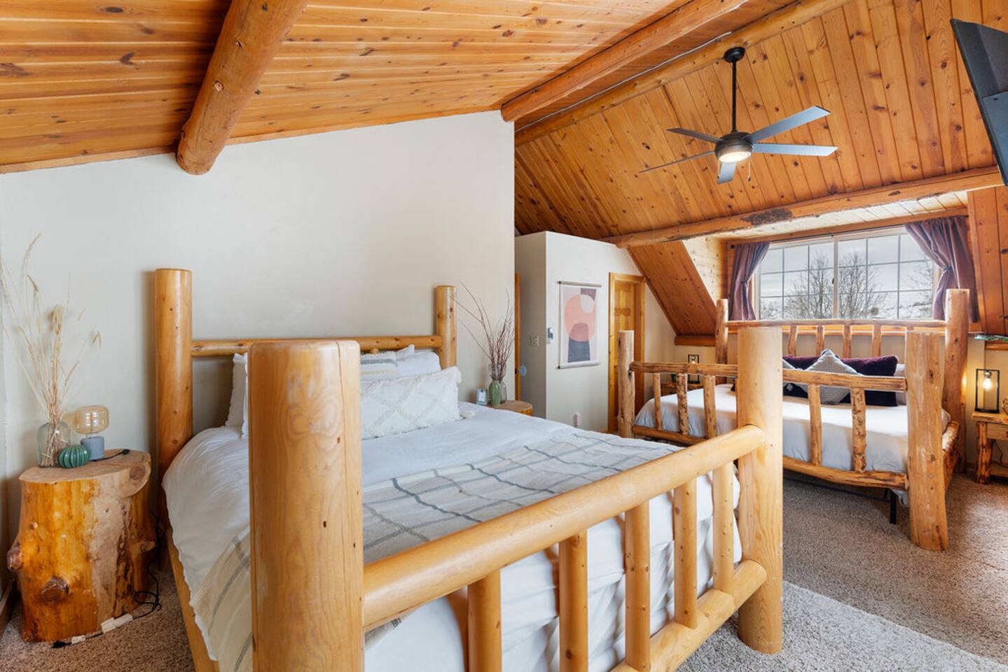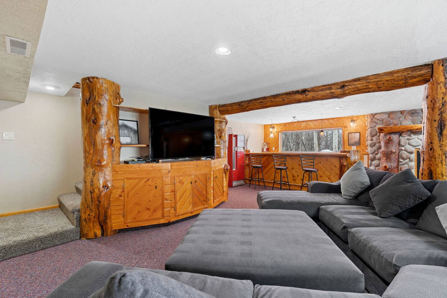 OUTDOOR SPACE Everyone loves the beauty of Bear lake, and at this cabin there is plenty of outdoors to enjoy. Enjoy expansive lake views, hot tub, large balcony, fire pit, gas grill, and outdoor seating — all on 20 acres of private serenity. TWO LIVING ROOMS Spread out with two large living rooms with flat-screen TVs. Relax by the stone fireplace on the main floor, play ping pong, or lounge on the oversized sectional downstairs. BEDROOMS Spacious bedrooms offer plenty of room to sprawl out and sleep up to 17 people. Have a little one? We have you covered with a Pack n' Play. — Bedroom 1: King bed + Queen bed — Bedroom 2: Queen bed — Bedroom 3: Queen bed — Bedroom 4: Queen bed — Bedroom 5: Queen bed — Loft: Twin-over-full bunk bed + Twin bunk beds KITCHEN Fully equipped with stainless-steel appliances, microwave, toaster oven, drip coffee maker, blender, cooking basics, dishes/flatware, complimentary spices, and breakfast bar with 4 stools. TVs & WIFI Take in your favorite shows with Smart TVs located in the downstairs living room and master bedroom. You'll also enjoy high-speed Starlink Wifi throughout the property. PARKING/BOATS Bringing a boat? There is plenty of space to park your watercraft. There are two garage spaces for vehicles and room for 5 more in the driveway.